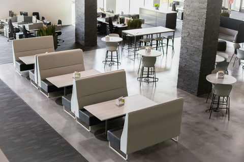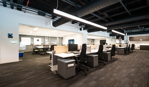 The tenant build-out for Dematic, a logistics technology services firm renowned for its expertise in supply chain optimization. The endeavor aimed to create a conducive environment for 200 employees, expanding the workspace to 27,200 square feet on the first floor and adding an additional 10,300 square feet through the construction of a mezzanine level within the vaulted space. The newly designed office exudes a loftlike ambiance with striking features such as floor-to-ceiling windows, stone-clad columns, and pillars showcasing the company’s core values. The space boasts seven conference rooms, 12 huddle rooms, executive offices, and amenities like shower and locker facilities to support a dynamic and collaborative work culture.