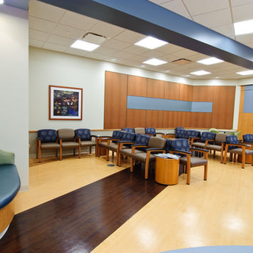 The Lurie Children's Hospital expansion at the Silver Cross Medical Campus accommodates 20 exam rooms, an x-ray/radiology room, and multiple procedure and treatment spaces. This addition includes a comprehensive rehabilitation gym tailored for pediatric outpatient care. Its design features an expansive waiting area adorned with detailed millwork and engaging, interactive elements designed specifically to cater to the needs of young patients. Complementing these patient-centered spaces are dedicated physician offices and staff support areas, facilitating seamless collaboration among nurses, technicians, and administrative personnel.